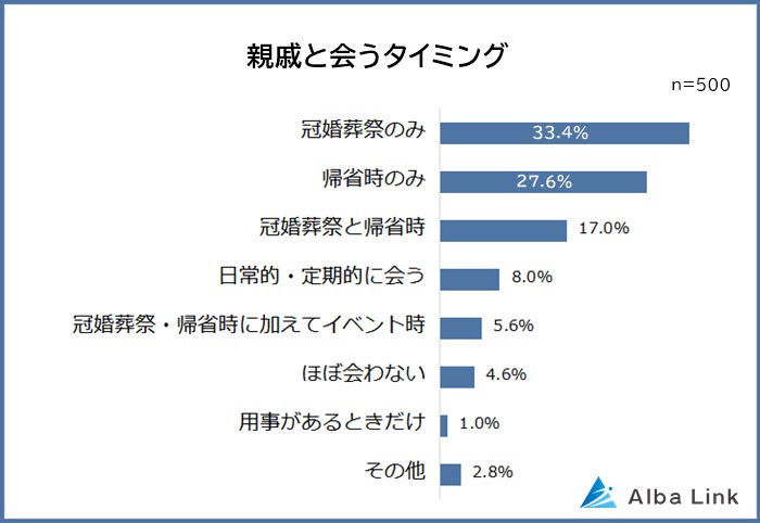 ・親戚と会うのは「冠婚葬祭のみ」が33.4%