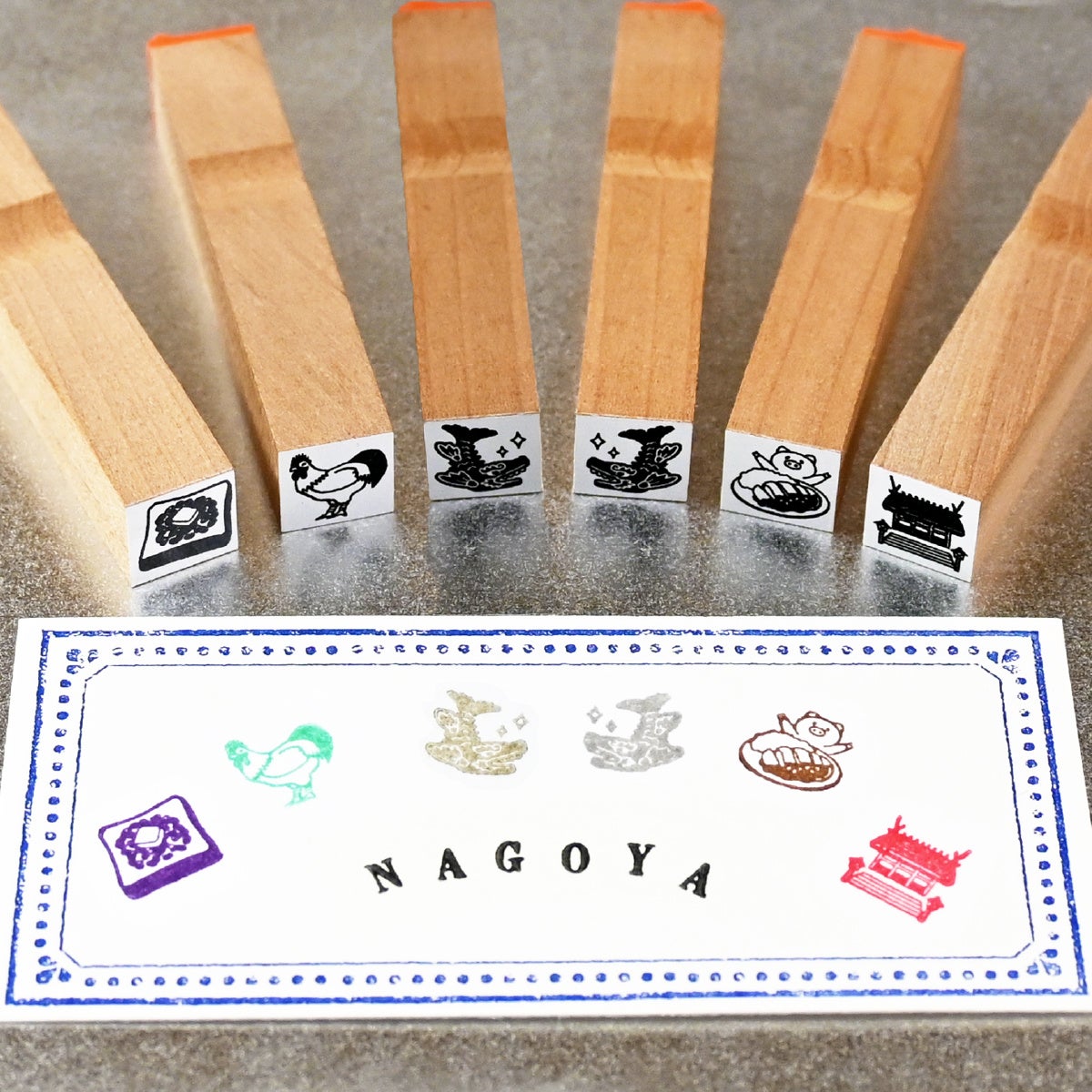 名古屋名物をモチーフにした名古屋会場限定ワンポイントスタンプです。手帳やメモに捺して名古屋の魅力を満喫しましょう!デザインは、「小倉トースト」「名古屋コーチン」「しゃちほこ/左」「しゃちほこ/右」「味噌かつ」「熱田神宮」の6種類。