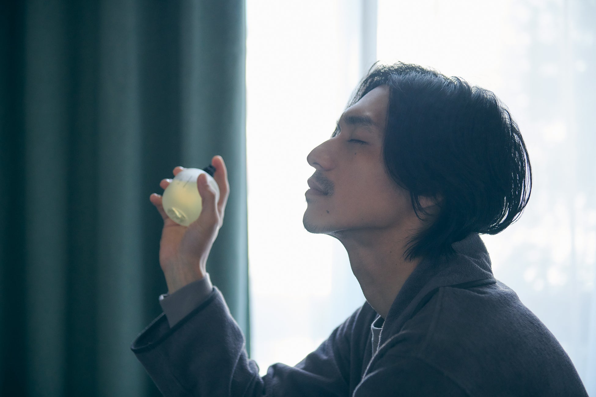 スキンケアのはじめに、まずは香りを使って静かに呼吸をし、一瞬でムードを整える。