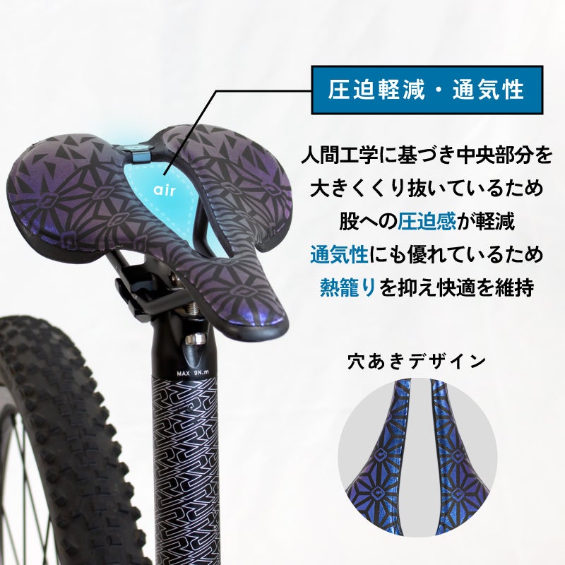 尿道への圧迫感を軽減し、空気の流れをつくり、快適なライドを実現させます。