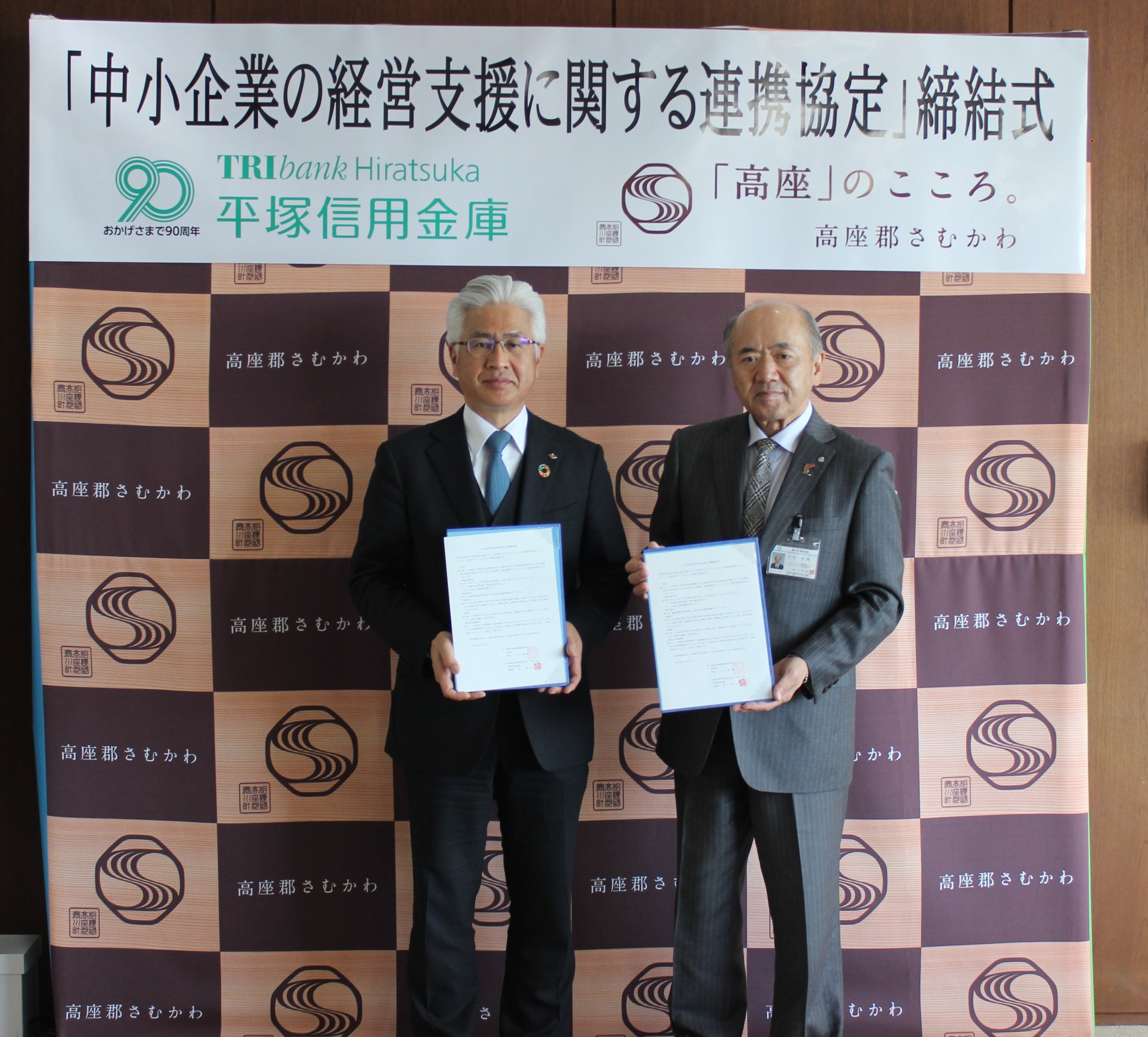 平塚信用金庫と寒川町は、中小企業の経営支援における連携協定を締結しました