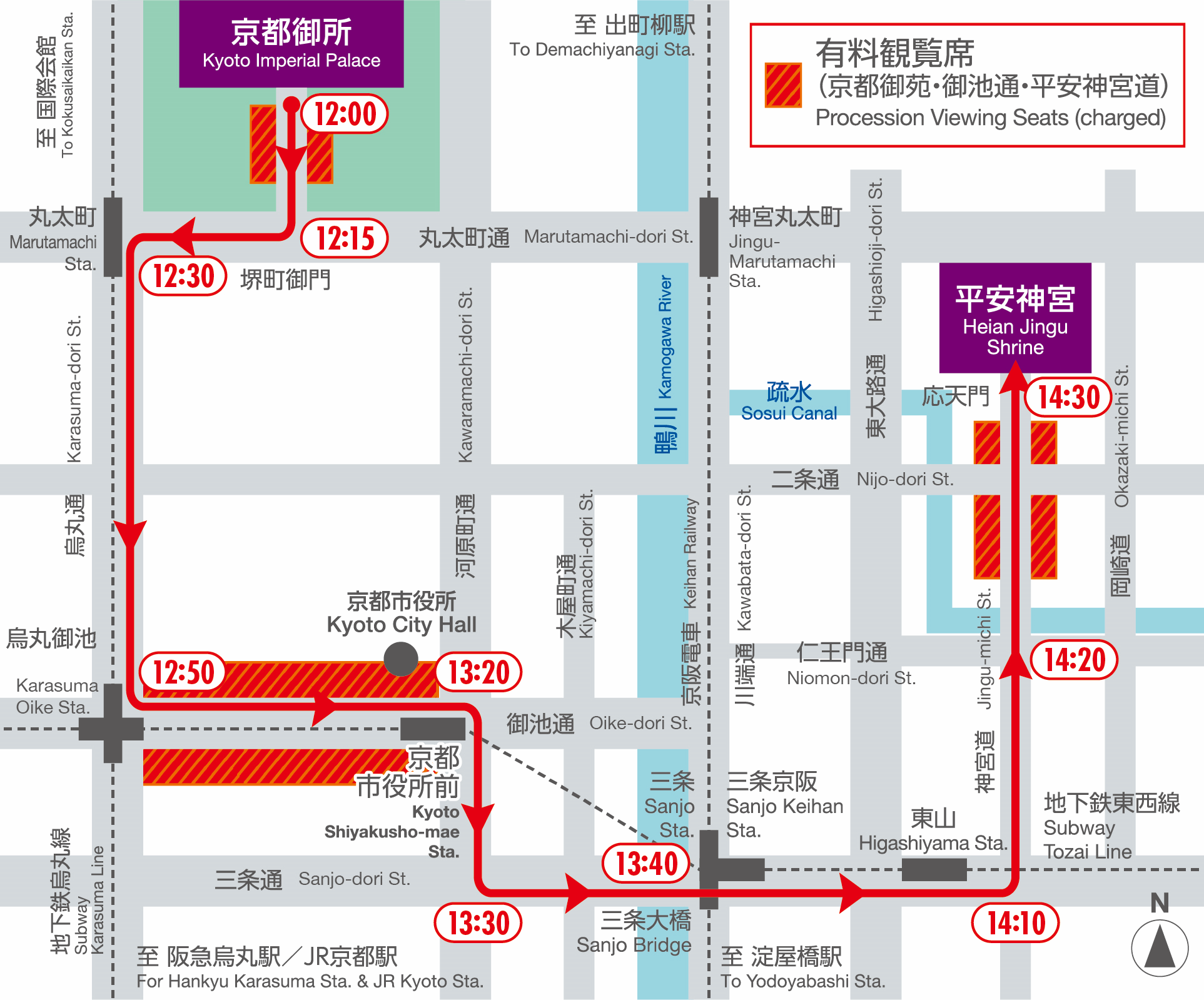 「京都三大祭」の一つ、時代祭の時代行列が、10月22日(土)に、都大路に3年ぶりとなる絢爛豪華な歴史絵巻を繰り広げます。(公社)京都市観光協会(DMO KYOTO)では、安心・安全にゆっくり御覧いただけるよう、感染症対策を講じたうえで、観覧席を販売いたしますのでお知らせいたします。