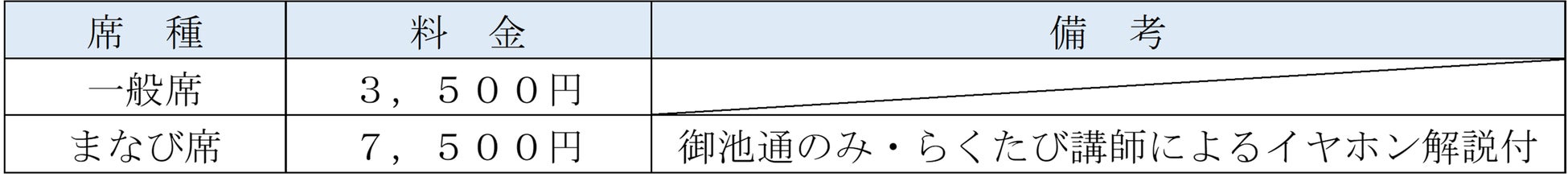 - 販売料金(全席指定・カラーパンフレット・オリジナル手提げ袋(不織布製)付・消費税込)