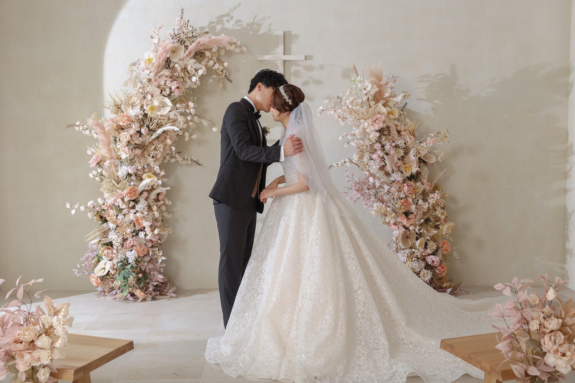 “花のチャペル”スタジオ内にはお花に囲まれたチャペルのほか、お花を使った複数の背景をご用意しており、バリエーション豊富な撮影が叶います。