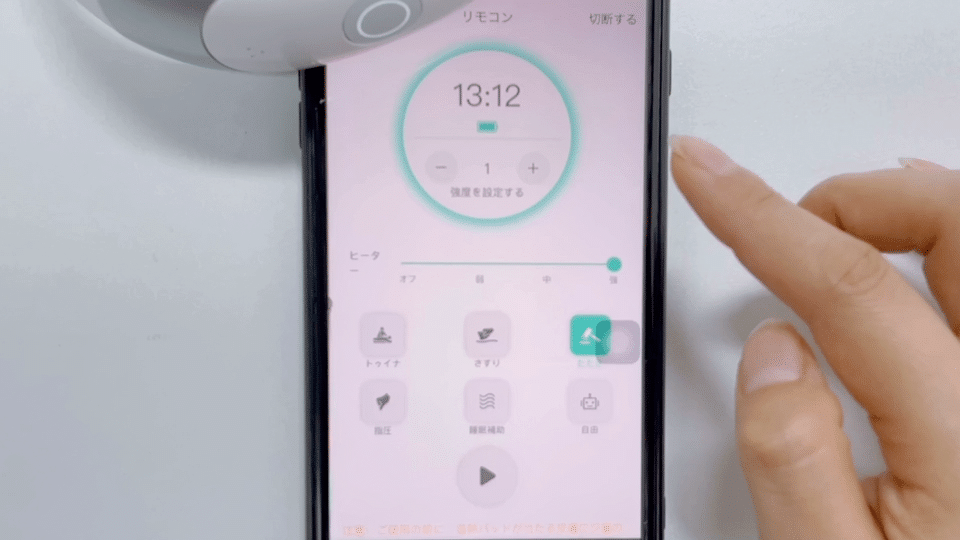 APP連携により、6つのモード、3段階の温熱、15段階の強度を全てワンタッチ調節ができます。