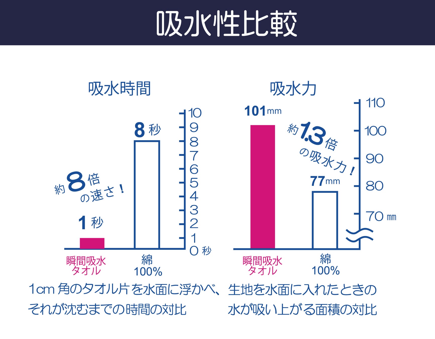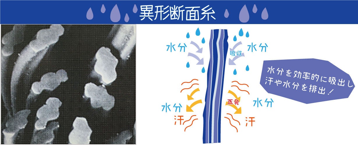 この「スーパ-吸水タオル」は糸の断面を、丸じゃなく異なる形にした「異系断面糸」という特殊な糸で作られています。