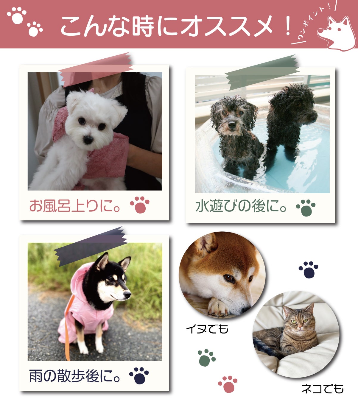 ・タイトル:【吸水性8倍でタオルドライ時短】お風呂がもっと楽しくなる。スーパー吸水ペットタオル