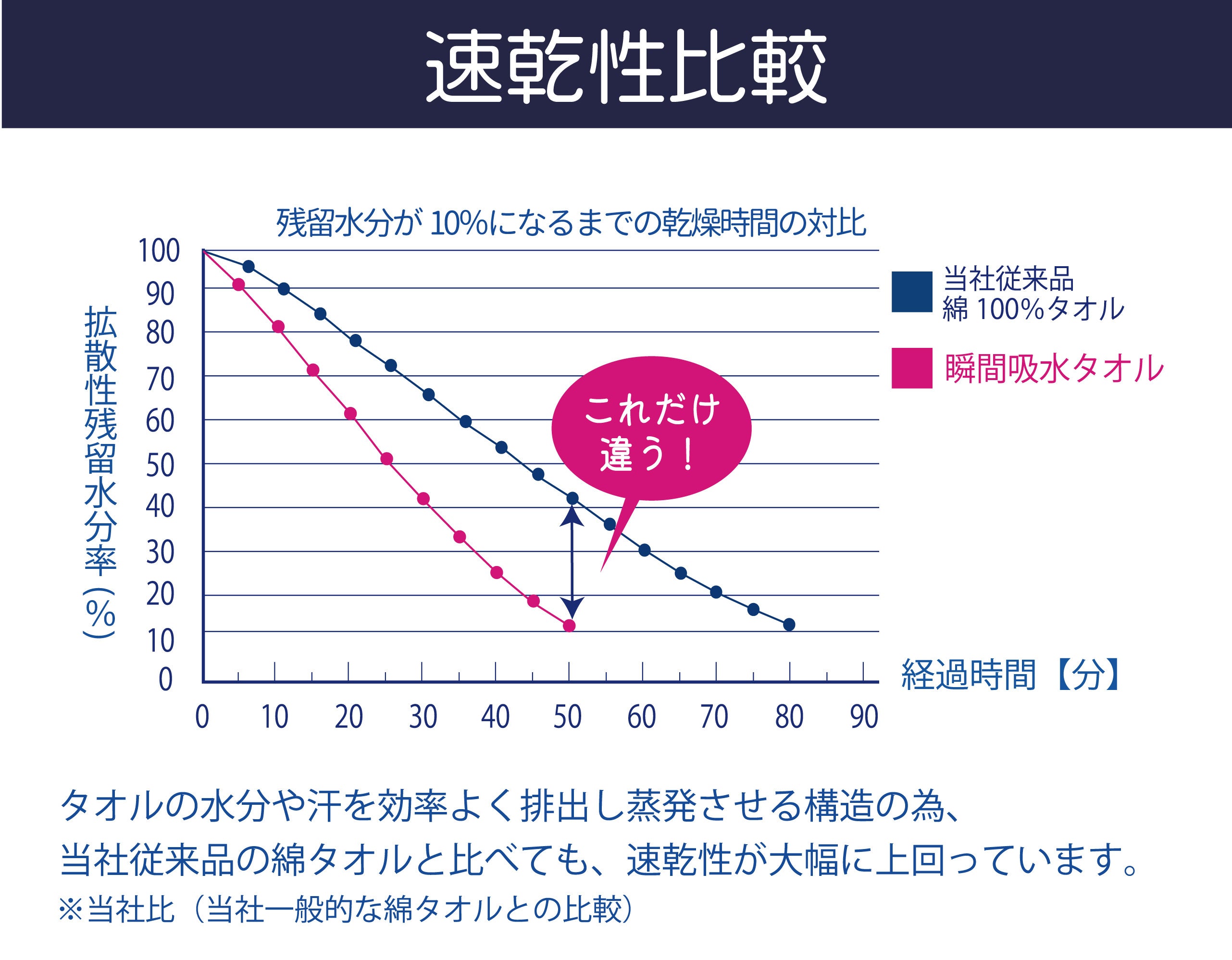 水分を効率的に吸い出す力を施す構造となり、タオルの水分や汗を排出し、蒸発させます。
