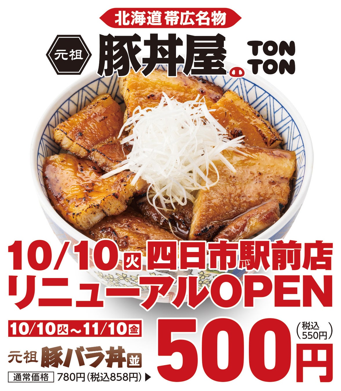 2023年10月10日(火)元祖豚丼屋TONTON 四日市駅前店リニューアルオープン
