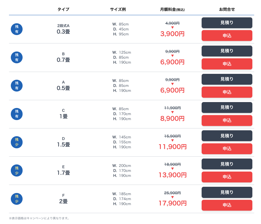 荷物以上に大きな部屋を借りてしまうことや、狭すぎて荷物が入らなかったなんていうトラブルを回避できます。