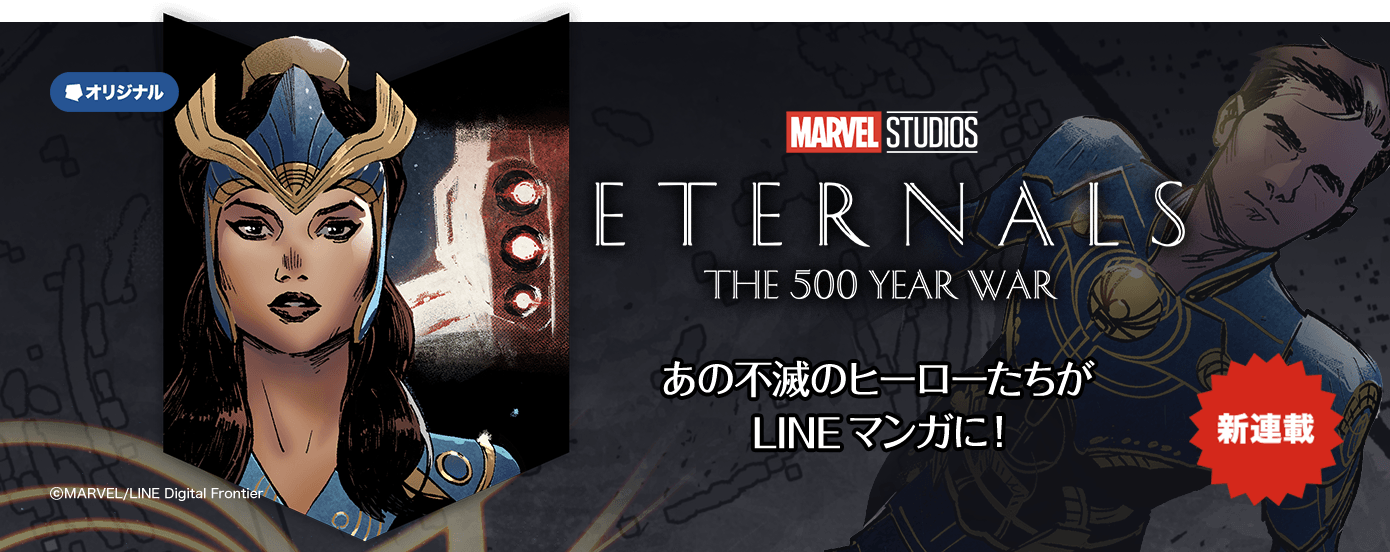 LINE Digital Frontier株式会社 (本社:東京都新宿区、代表取締役社長:金 俊九(キム・ジュンク)) は、当社が運営する電子コミックサービス「LINEマンガ」https://manga.line.me/ において、「Marvel Entertainment」とのコラボレーションによる初のオリジナルwebtoon作品『エターナルズ:500年戦争』を公開しました。