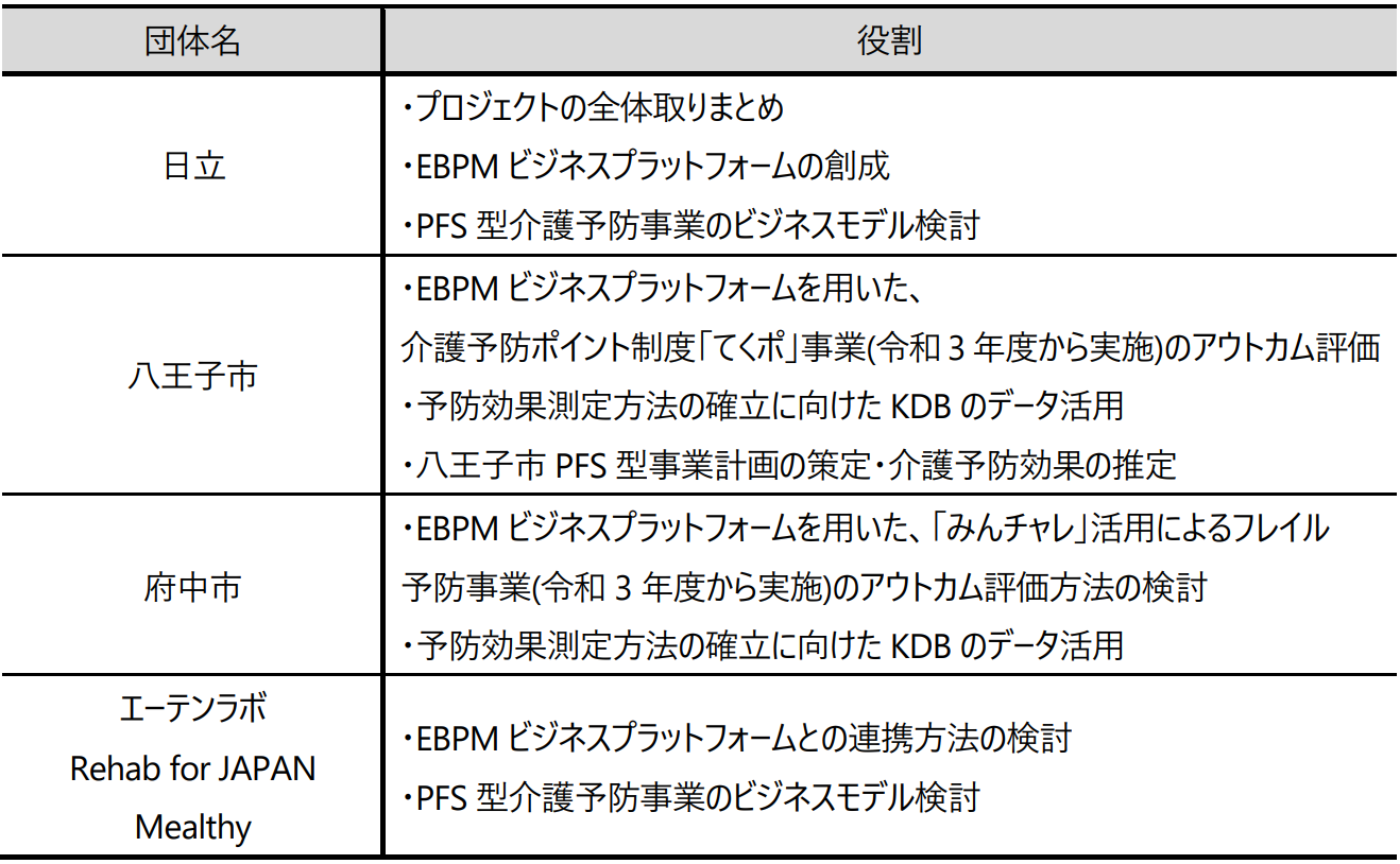 株式会社日立製作所(以下、日立)は、このたび、東京都が主催する「令和4年度 東京都次世代ウェルネスソリューション構築支援事業」*1に、成果連動(Pay For Success:PFS)型*2介護予防事業を駆動するEBPM(Evidence Based Policy Making)*3ビジネスプラットフォームの創成に向けたプロジェクト(以下、本プロジェクト)を提案し、選定されました*4。