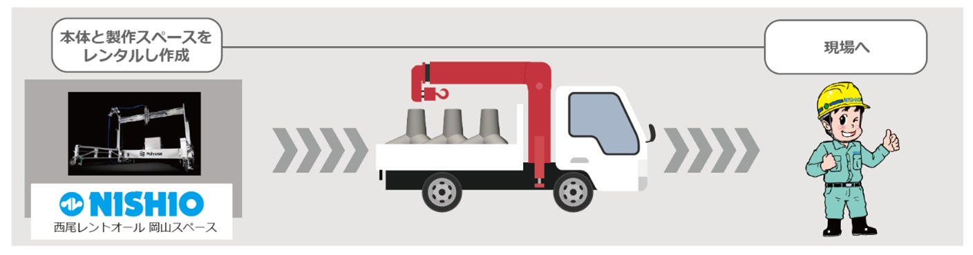 西尾レントオールは建設用 3D プリンタ『Polyuse One』のレンタルを開始します~建設業界に新しい選択肢!最新技術で工期短縮・省人化・カーボンニュートラル実現へ~