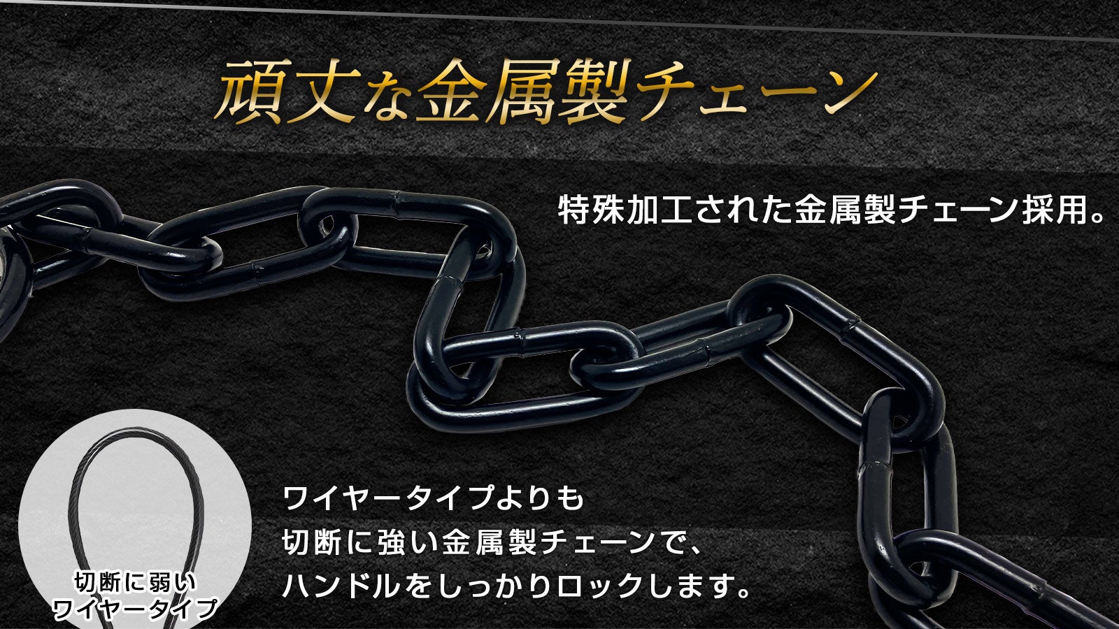 そこで開発したのが、頑丈な金属製チェーン×ピッキングに強いロック構造を採用した『MTK ハンドルロック』です。