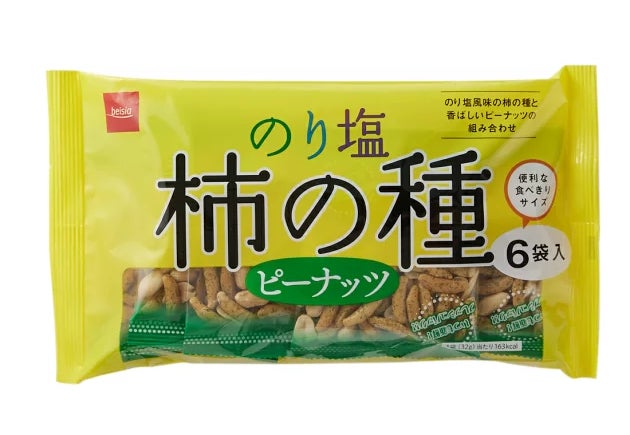 2016年の発売よりロングセラーで、どの年代の方も食べやすい味付けの当社オリジナルの「のり塩」の柿の種です。発売当初より、あおさの使用量が25%アップしたことで、のりの風味をより味わえるようになりました。家飲みのお酒のお供にもぴったりです!