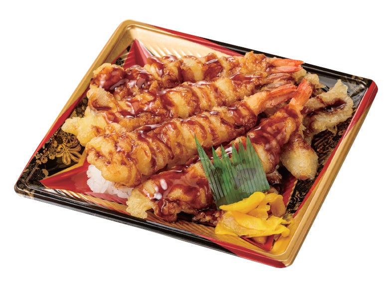 その名の通り、海老天がたっぷり4本と季節の天ぷらが入ったお弁当です。いまの時期は舞茸天ぷらが一緒に楽しめます。天ぷらのタレは、ご飯が進むこだわりの甘め仕上げ。お出かけ先などでそのまま食べても美味しくなるように作っています。