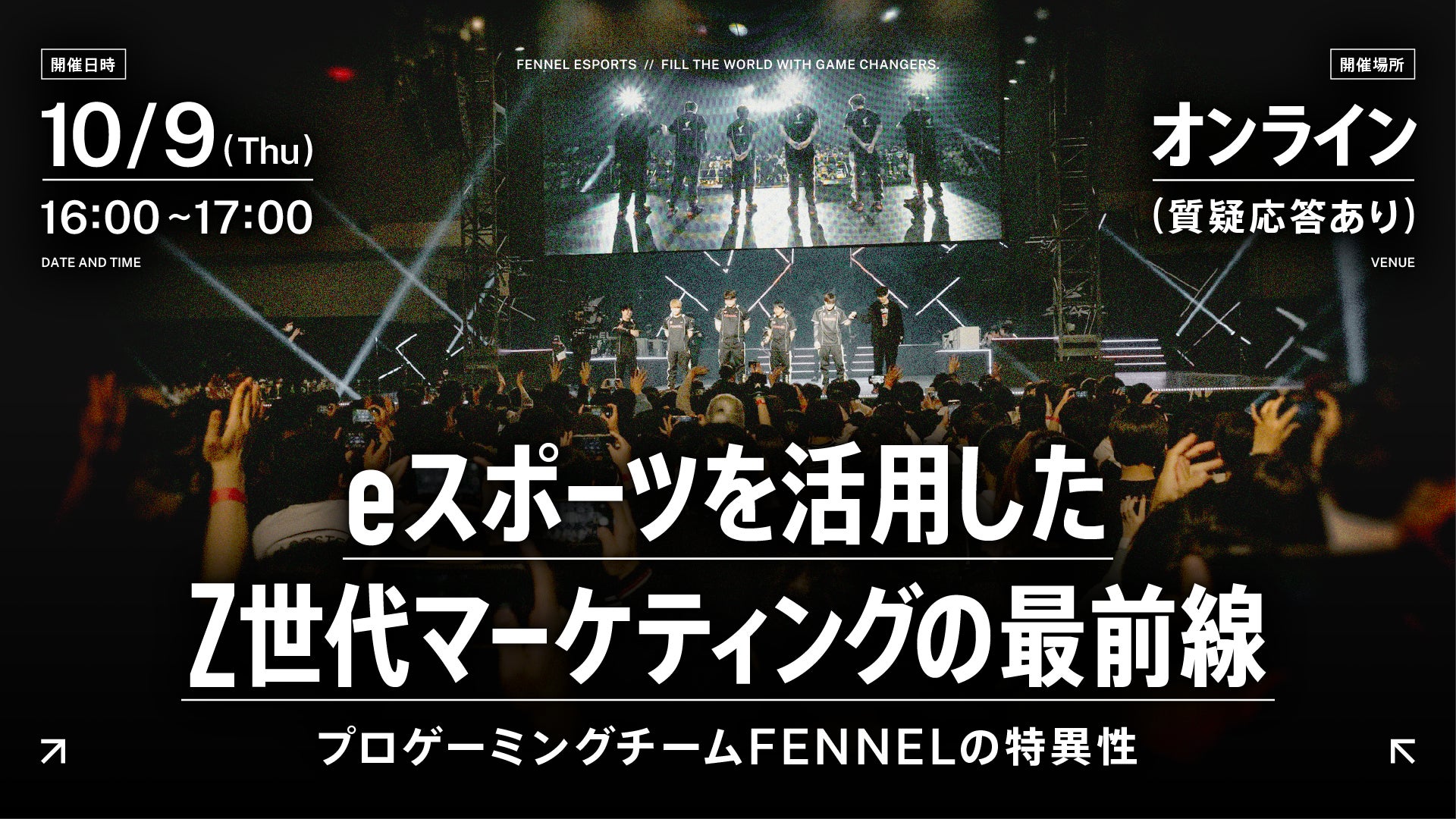 プロeスポーツチームFENNEL、10月9日(木)にオンラインセミナー「eスポーツを活用したZ世代マーケティングの最前線」を開催 ─ Z世代リーチの最新戦略を語る