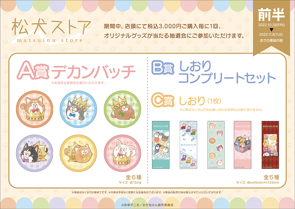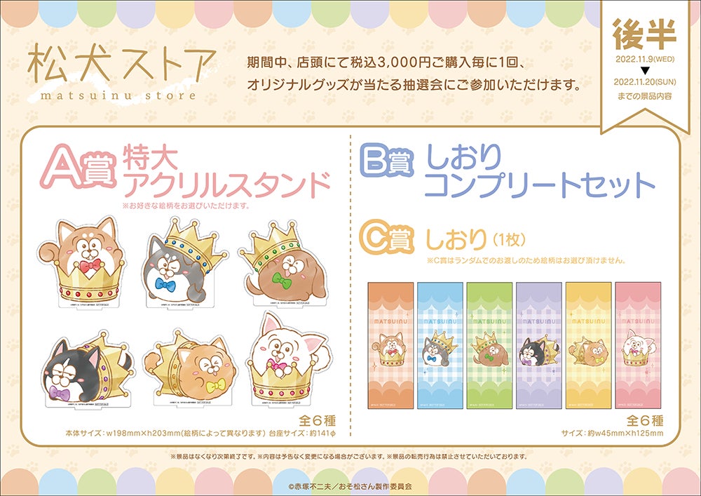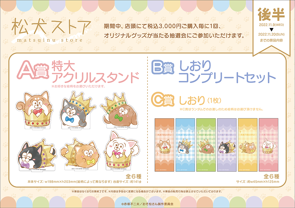 株式会社コンテンツシード(本社:東京都品川区、代表取締役:大塚 則和)は、2022年10月28日(金)より渋谷MODI7階にて松犬 3周年ストアを開催いたします。