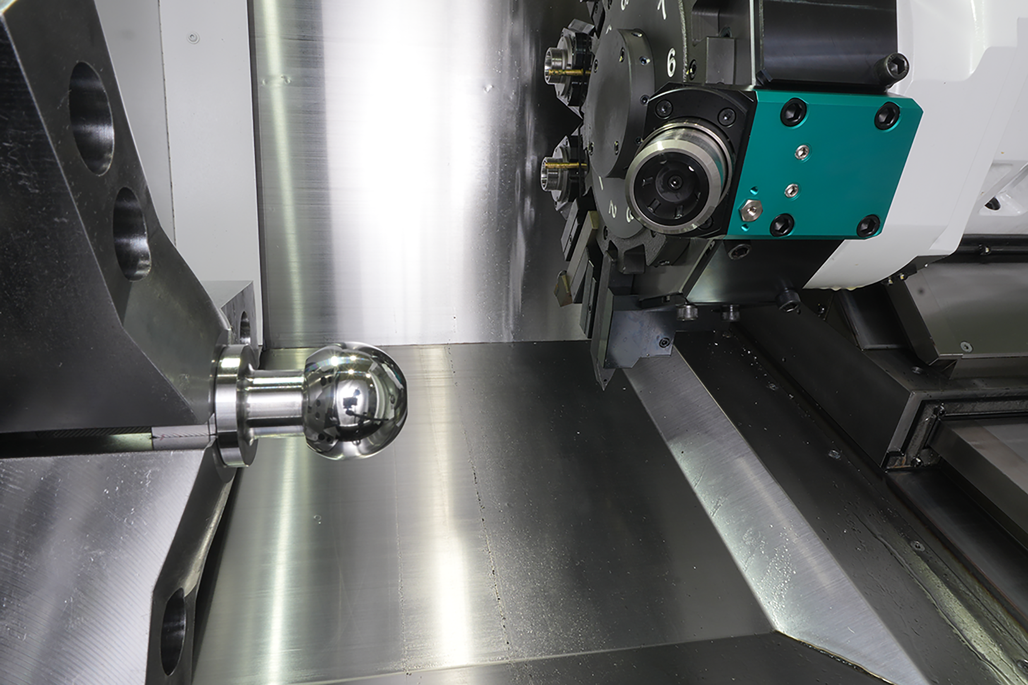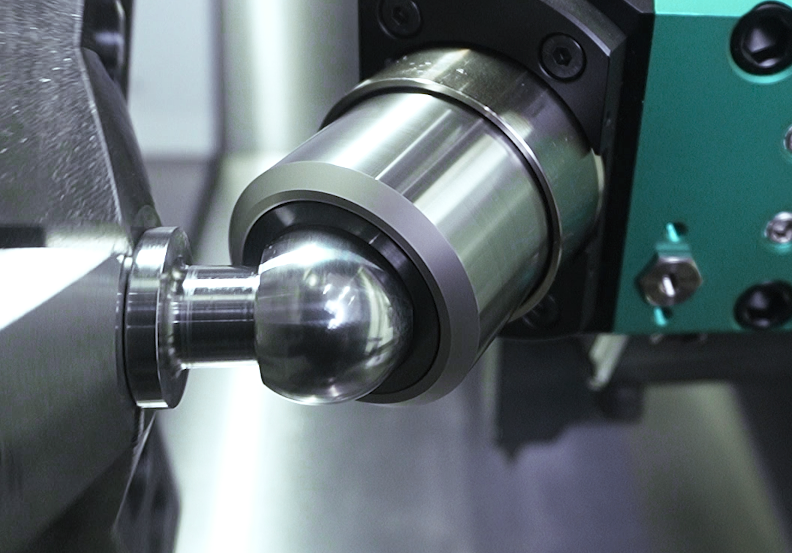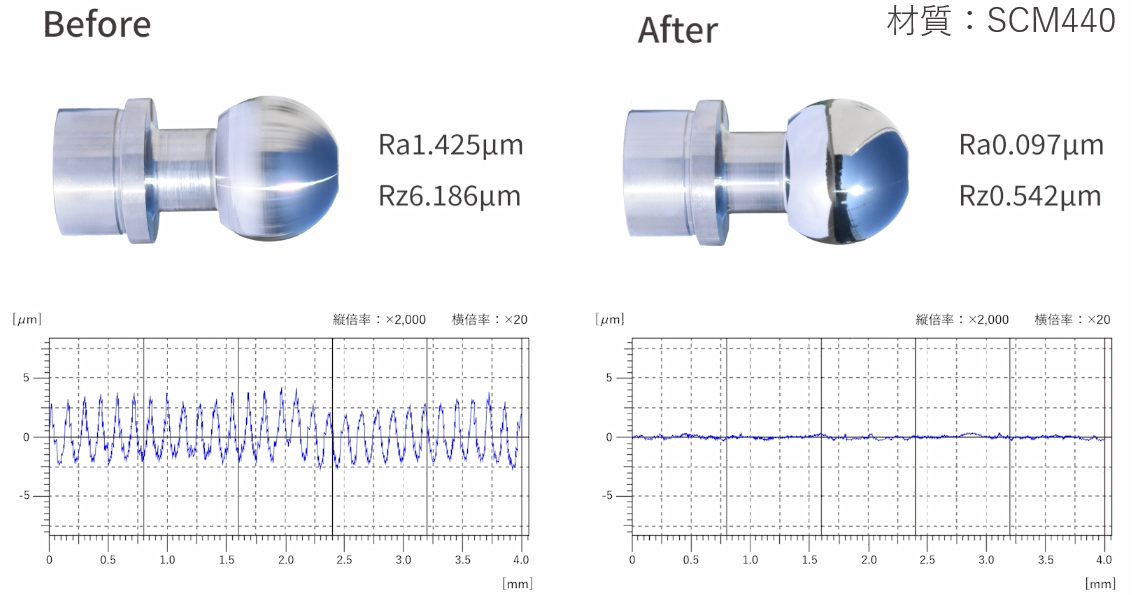 ボールスタッドやタイロッドエンドといった自動車の駆動部品は、球面形状が不可欠であり、加えて高精度かつ高品質な表面仕上げが求められるため、加工難易度が非常に高い領域です。これまで球面形状の高品質加工には、熟練の技能を必要とする専用機に依存することが多く、導入コストや運用負担が大きな課題でした。
