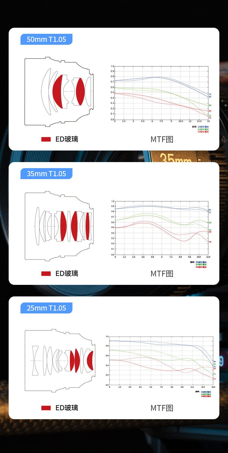 七工匠は最初のシネマレンズを発売されます。25mm T1.05、35mm T1.05及び50mm T1.05!