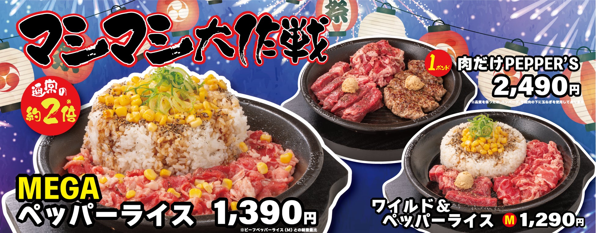 この夏のペッパーランチは感謝の気持ちも量もマシマシ!代表メニュー「ビーフペッパーライス」もペッパーランチ史上最重量に!「MEGAペッパーライス」はその重さ、なんと、1.6ポンド超!「ビーフペッパーライス(M)」と比較しても、総重量は約2倍です。