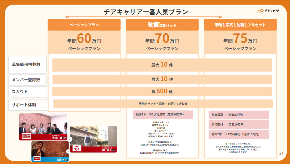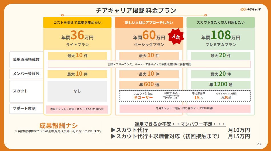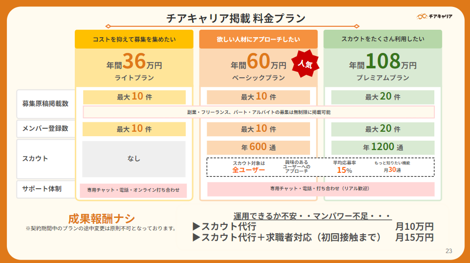 チアキャリア掲載 料金プラン