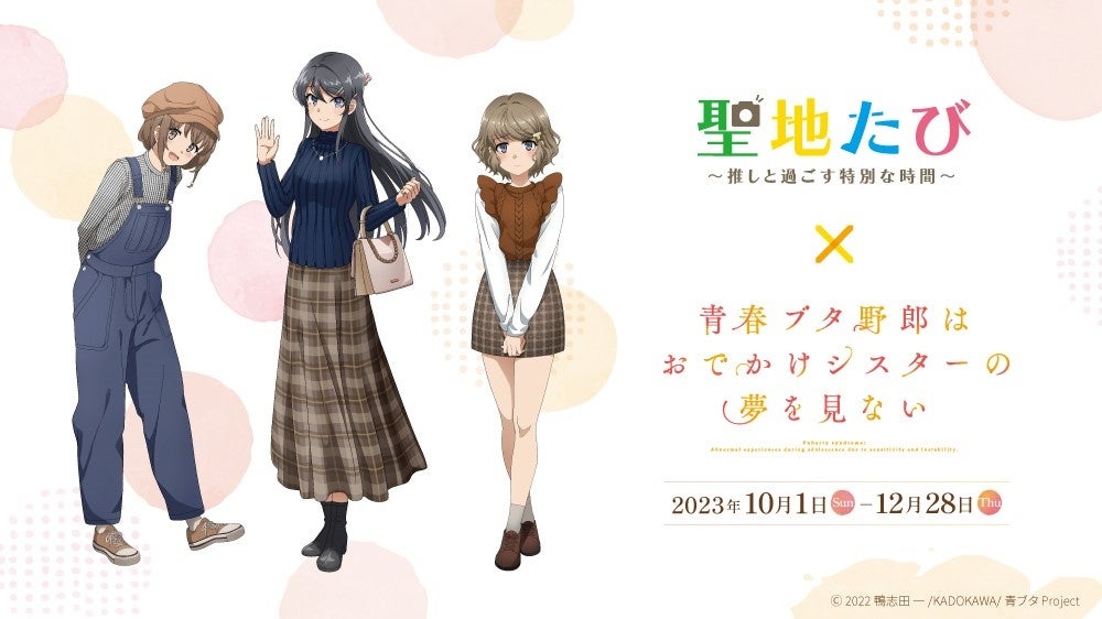 本企画の第1弾として、シリーズ累計発行部数が250万部を突破した、鴨志田一氏による人気小説「青春ブタ野郎」シリーズの劇場アニメ「青春ブタ野郎はおでかけシスターの夢を見ない」の作品の舞台である、神奈川県藤沢市を聖地としたスタンプラリーを10月1日(日)より実施いたします。スタンプラリーは、アプリをダウンロードして無料でご参加いただけるものと、描き下ろしイラストを使用したプレミアムグッズ付きスタンプラリー(有料)を実施するとともに、スタンプラリーの他にも、本企画限定「秋のお出かけ」をテーマとした描き下ろしイラストを使用した等身大パネルの展示や、オリジナルグッズの発売も予定しております。