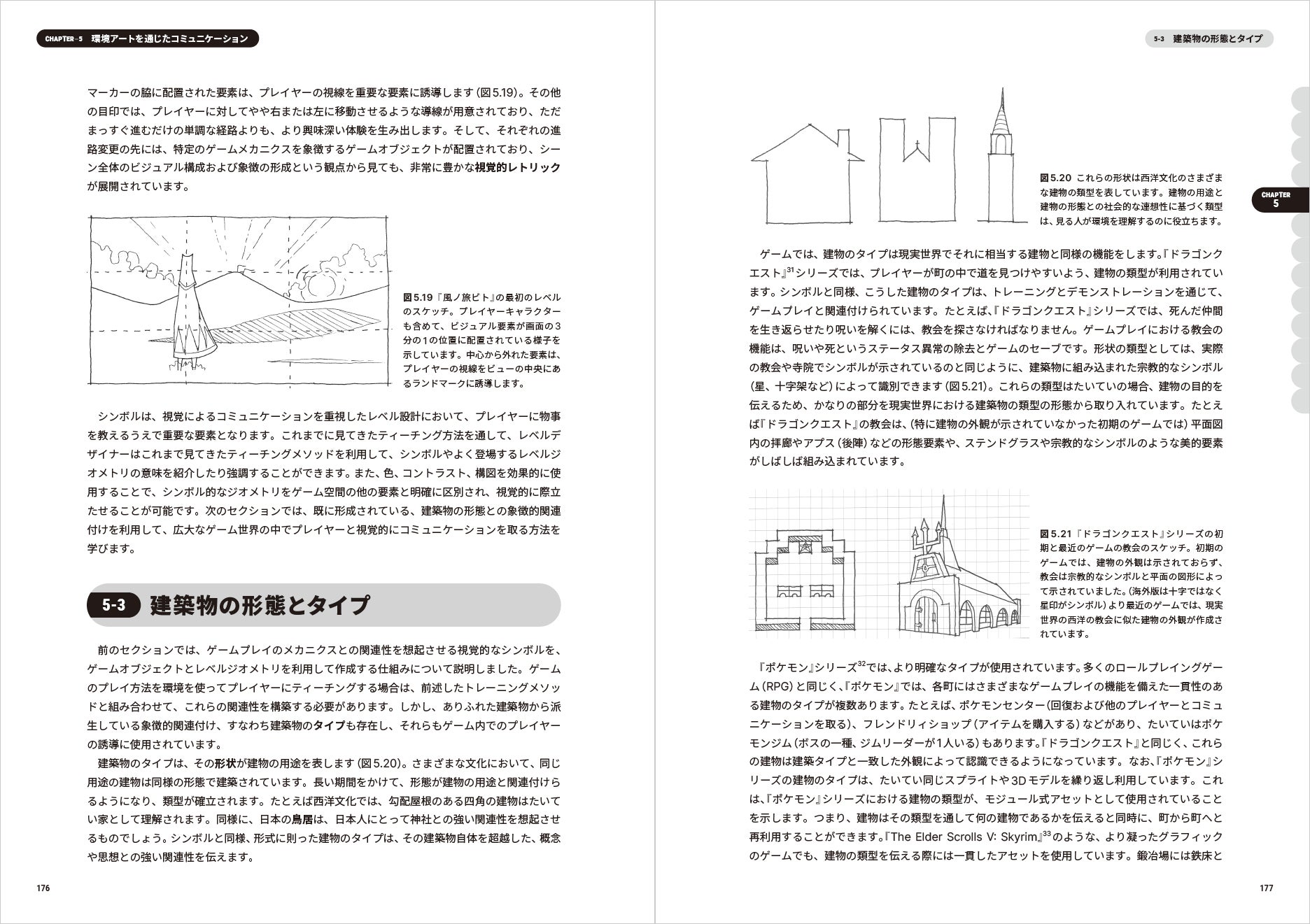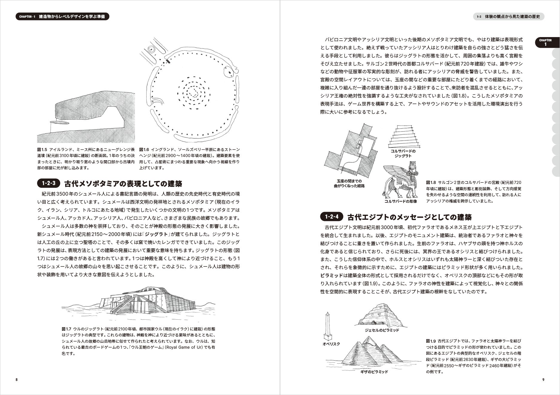 さらに、本書に登場するさまざまな歴史的建造物は、見た目の美しさだけでなく、空間の構成方法そのものから多くの学びを与えてくれます。特に、訪れる人々に強い体験をもたらすことを目的とした建築物には、ゲームプレイに通じる要素が数多く含まれています。これらの建築物と実際のゲームを比較・分析することで、