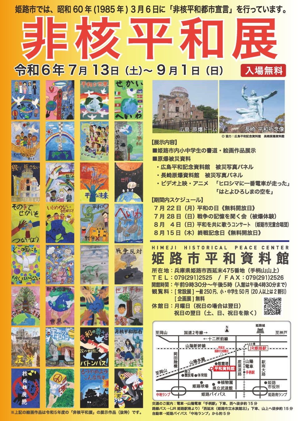 昭和60年3月6日の「非核平和都市宣言」の趣旨を広く市民にアピールするとともに、非核平和について考える機会を提供するため、「非核平和展」を開催します。