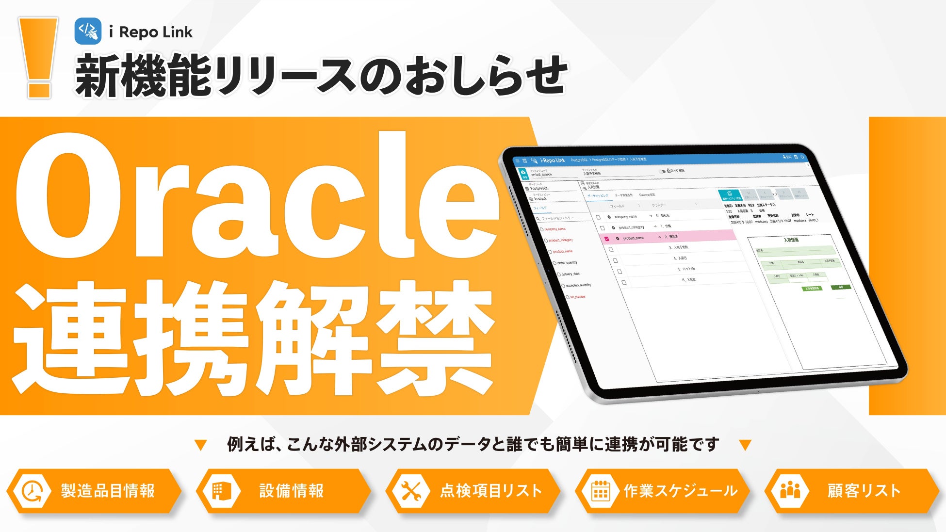 「PostgreSQL」に続き、「Oracleデータベース」をご利用のお客様もシステム間連携を簡単に構築できるようになりました。