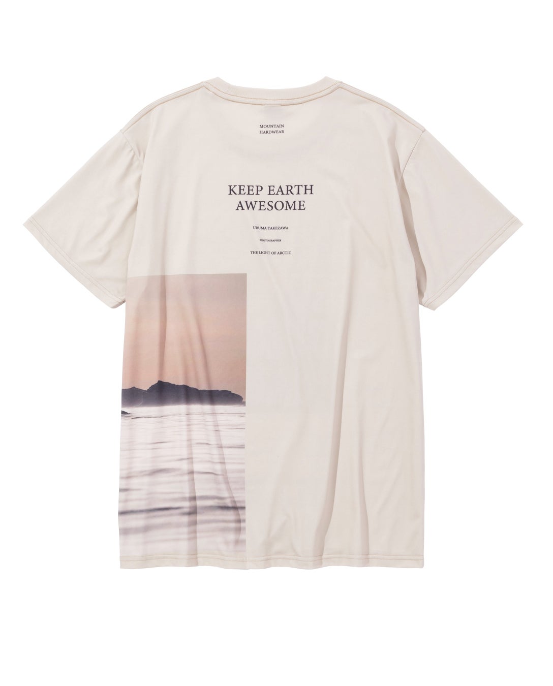 地球や環境について考え、美しい自然環境に感謝する1日、4月22日の「アースデイ」をテーマにしたTシャツです。写真家・竹沢うるま氏が北極犬ぞり遠征の際に見た「白夜の光」を大胆にTシャツのプリントに落とし込みました。
