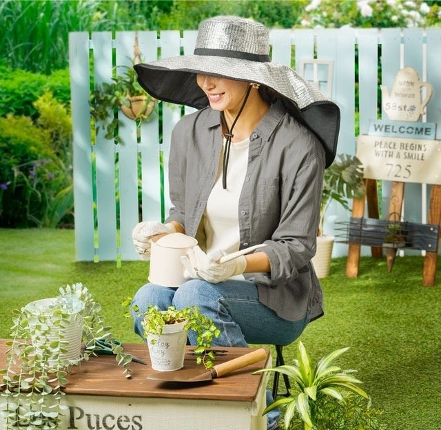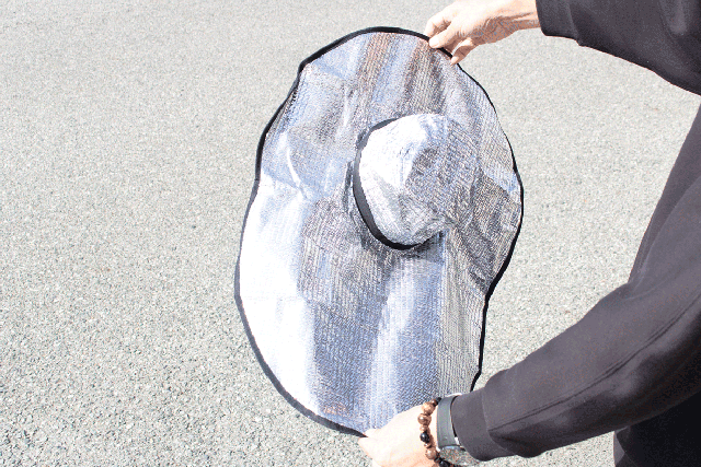 - 日差しを反射し遮熱する!その名も・・アルミでがっつり遮熱ビッグつば広帽子!