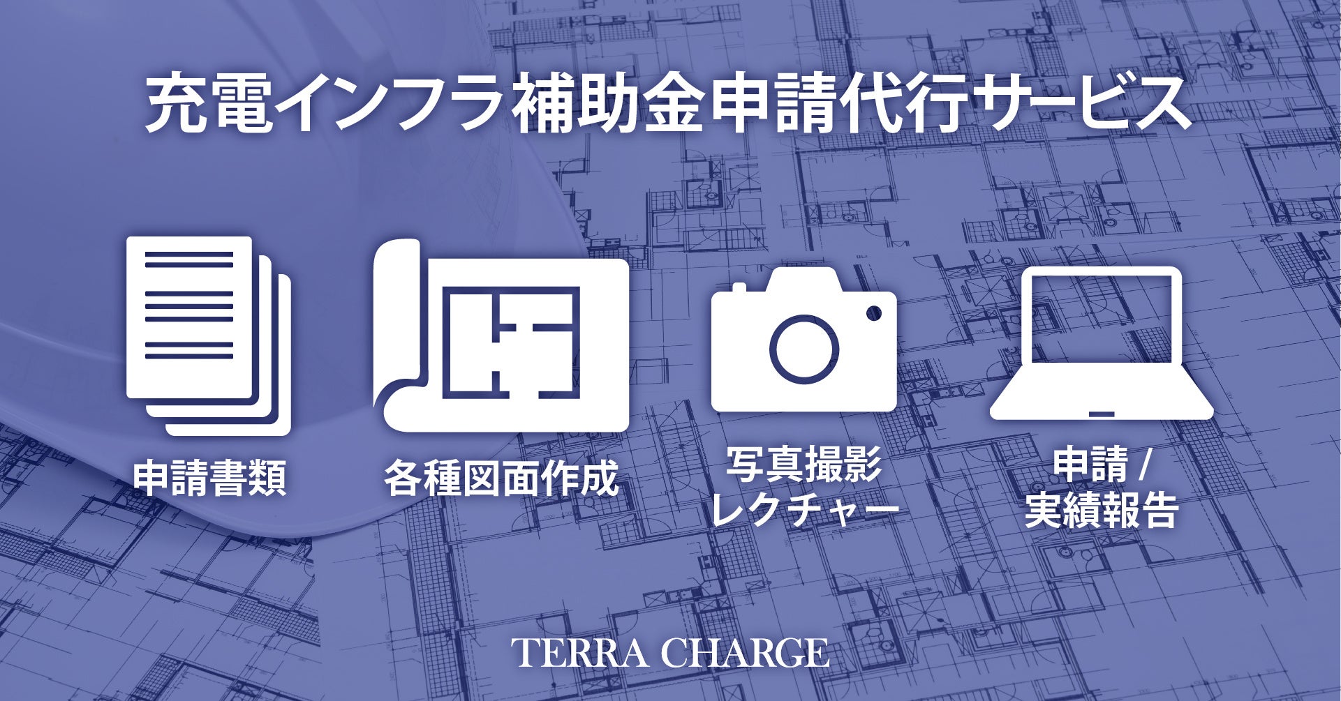 Terra Chargeは国内No.1*のEV充電サービスとしての実績を活かし、EV充電インフラ補助金の申請代行サービスをスタートいたします。EV充電インフラ「Terra Charge」を介さず、申請代行サービスのみご利用いただけます。