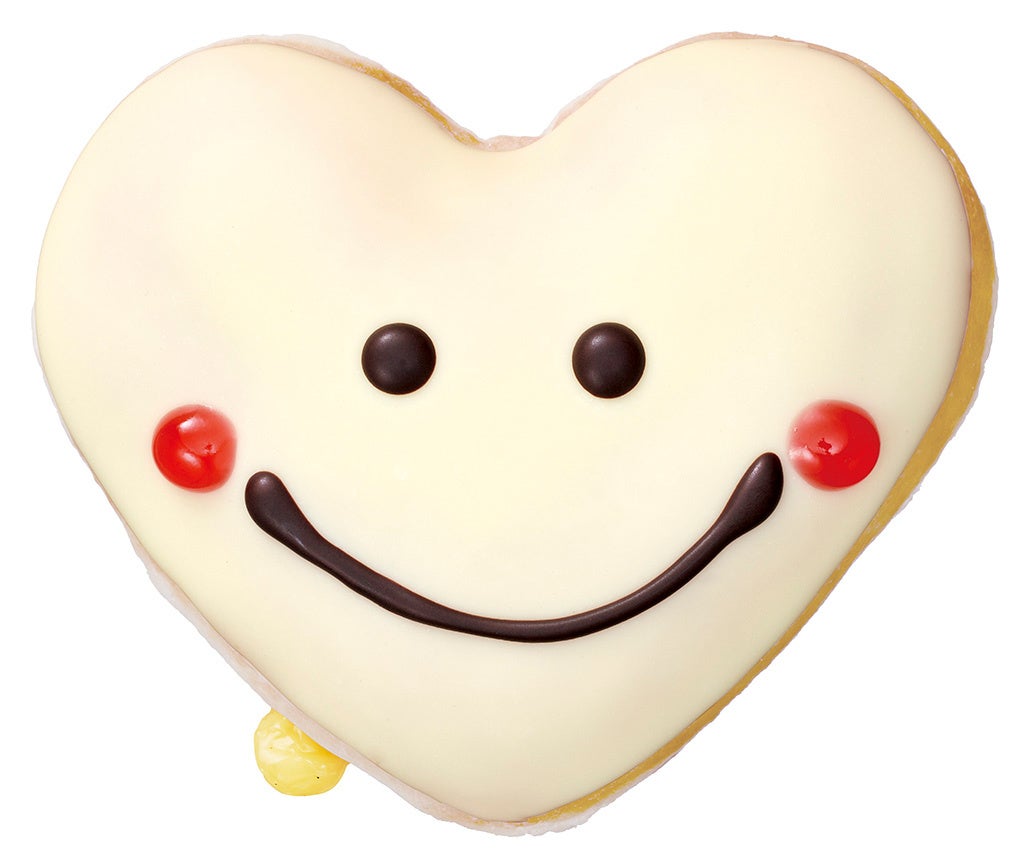 『ハート スマイル カスタード』は、感謝の気持ちを笑顔で伝えるドーナツです。ふわふわなハート型の生地にミルキーなホワイトチョコをコーティングし、中にコクのあるカスタードクリームを詰め、ビターチョコで優しい笑顔を描きました。甘酸っぱいストロベリーナパージュでチャーミングなほっぺたを描き、キュートなスマイルを表現しています。