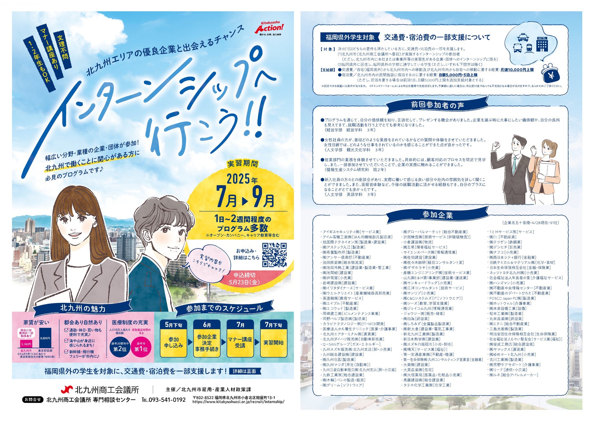 ▶ 専用サイトURL:https://www.kitakyushucci.or.jp/recruit/internship/