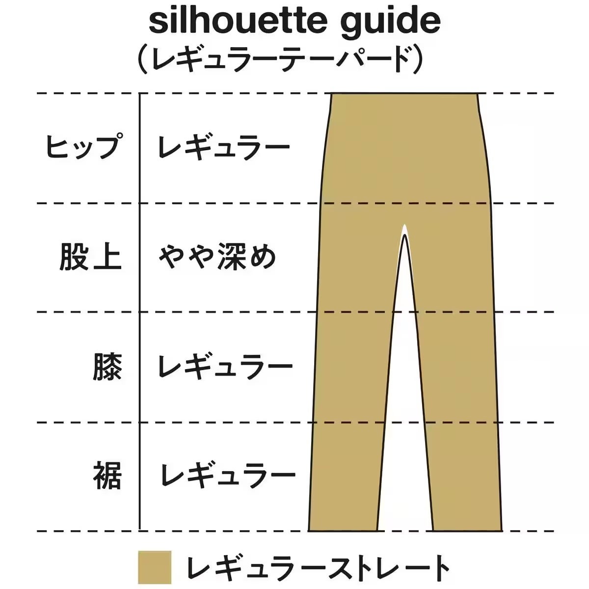 股上やや深め・膝から裾はゆるやかなテーパード仕様。キレイ目に見えて穿きやすいシルエット!
