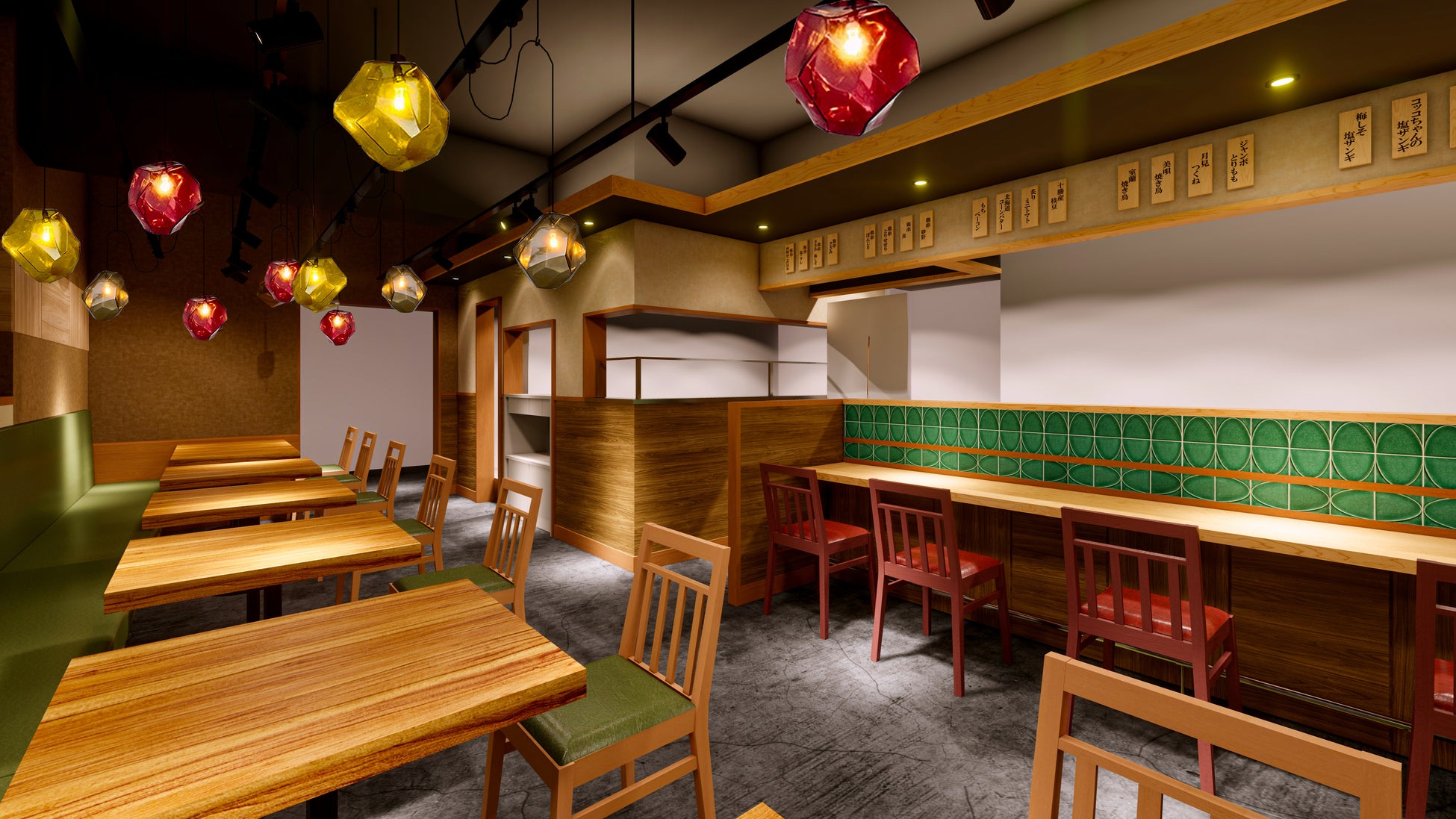 ■店内イメージ木目をメインとしてカウンター席やテーブル席を完備