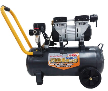 軽くて錆びにくいアルミタンク式のコンプレッサータイヤ交換や埃飛ばし、空気入れなどに大活躍!「アルミタンク静音コンプレッサー」