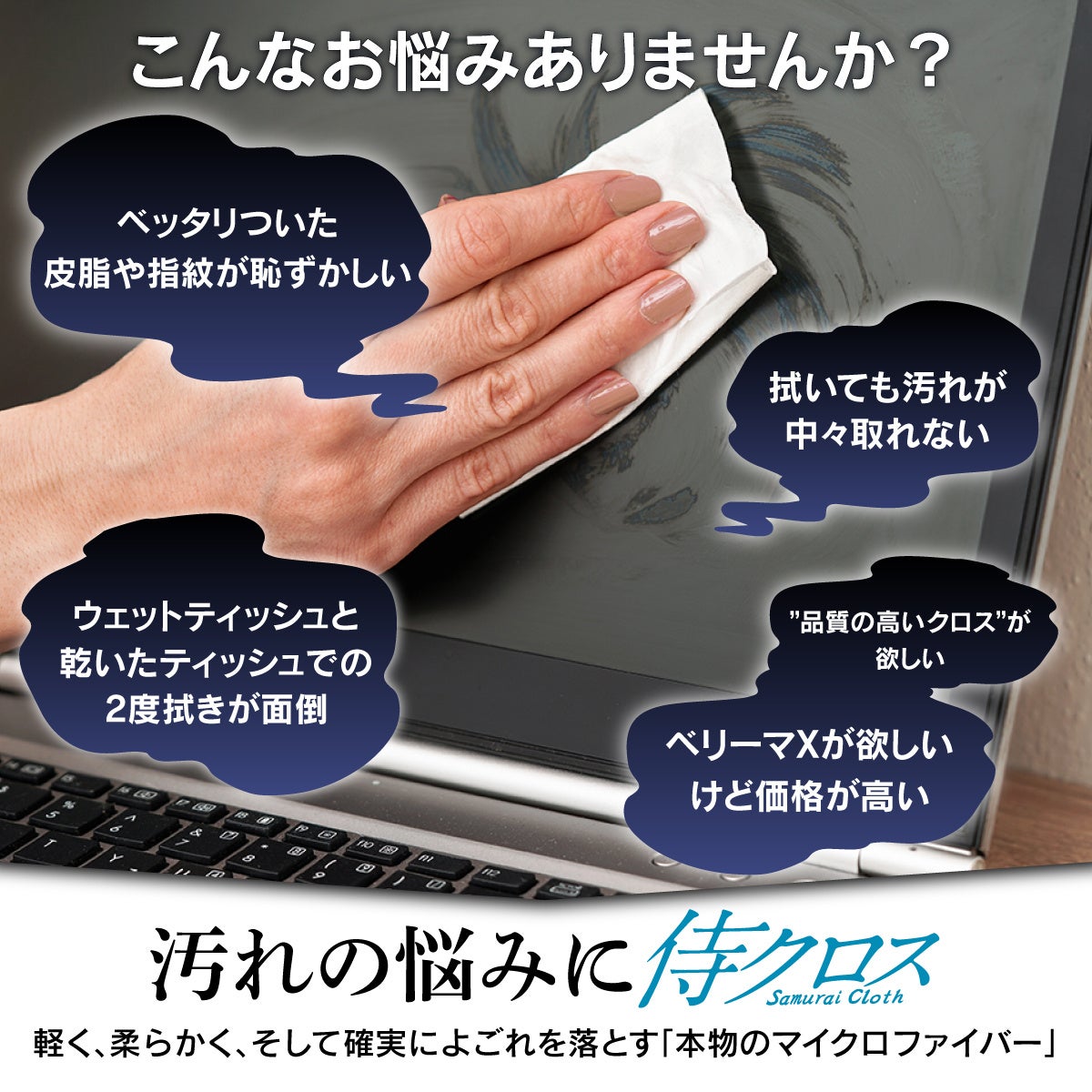 サムライクロスは日本製高品質素材「超極細繊維 ベリーマ(R)X」を使用した高品質クロス。ノートPC・パソコンモニターに適したMサイズ、テレビのディスプレイをに適したLサイズを5日間限定セール価格で販売