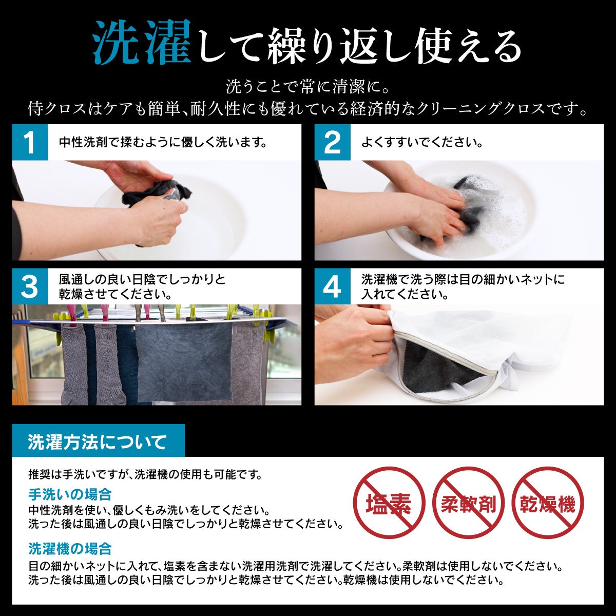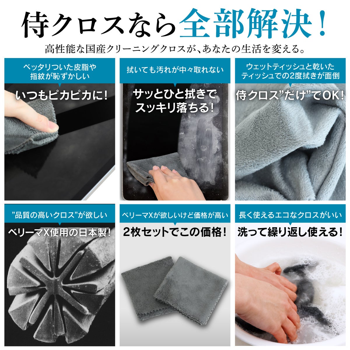 【9月1日-9月5日 限定セール】超強力クリーニングクロス【侍クロス】iPhoneなどのスマホ液晶画面、タブレット、車内のピアノブラック掃除、軽く拭くだけで脂・指紋汚れ・ホコリが取れる!メガネ拭きにも