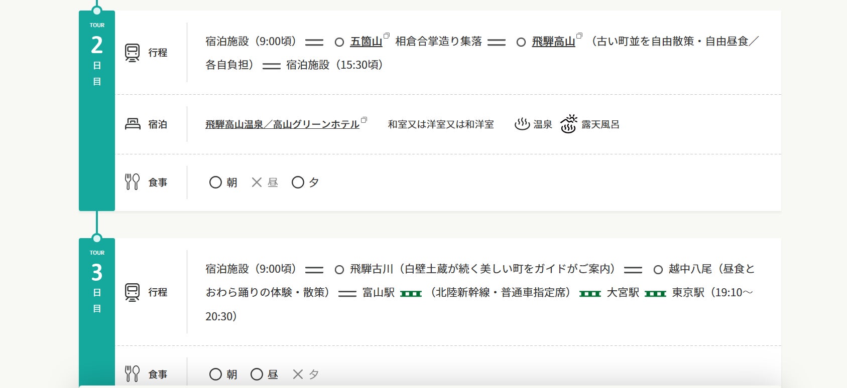 「越中となみ野温泉」「飛騨高山温泉」お泊りは2泊ともに温泉宿へ。