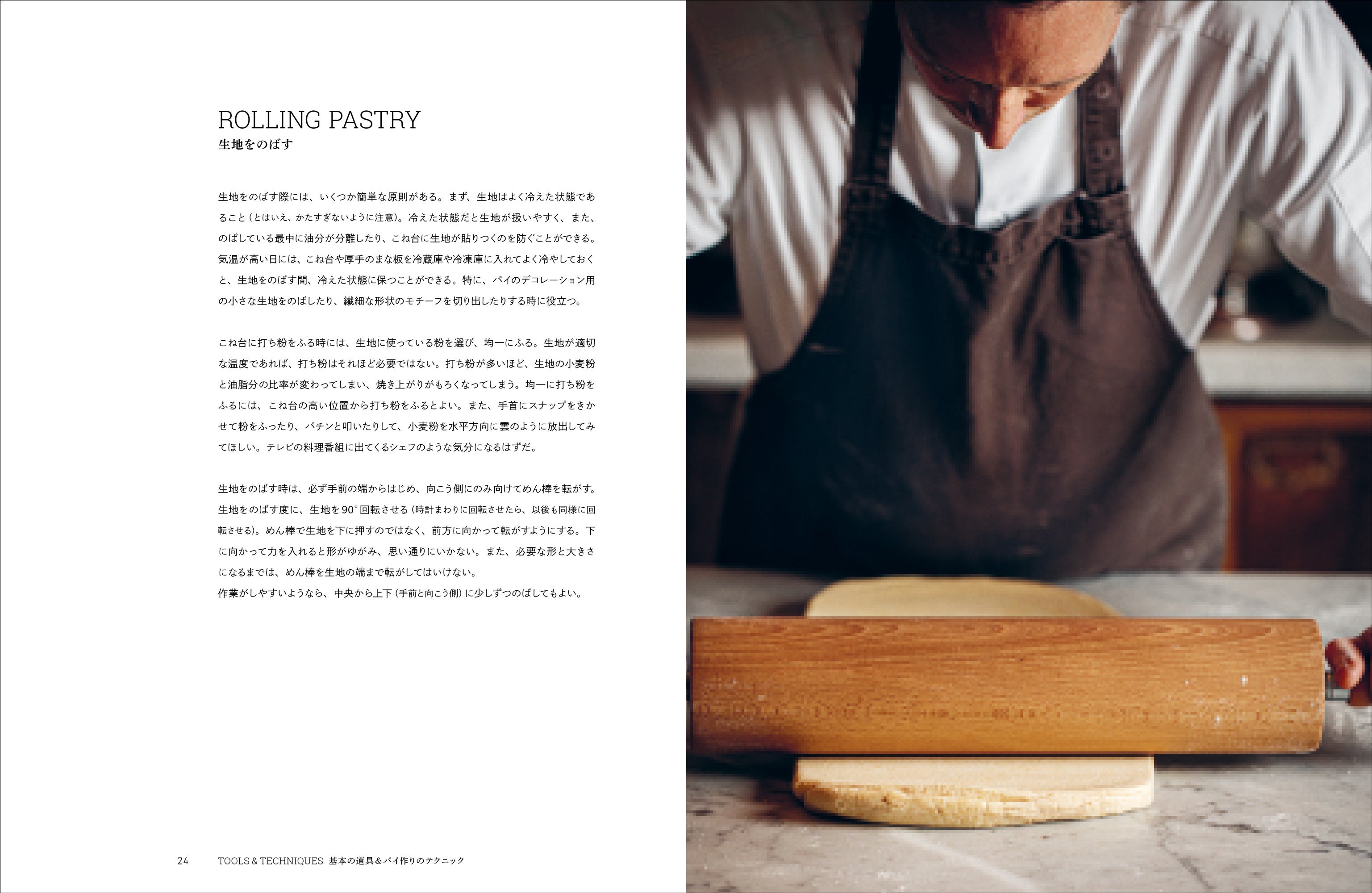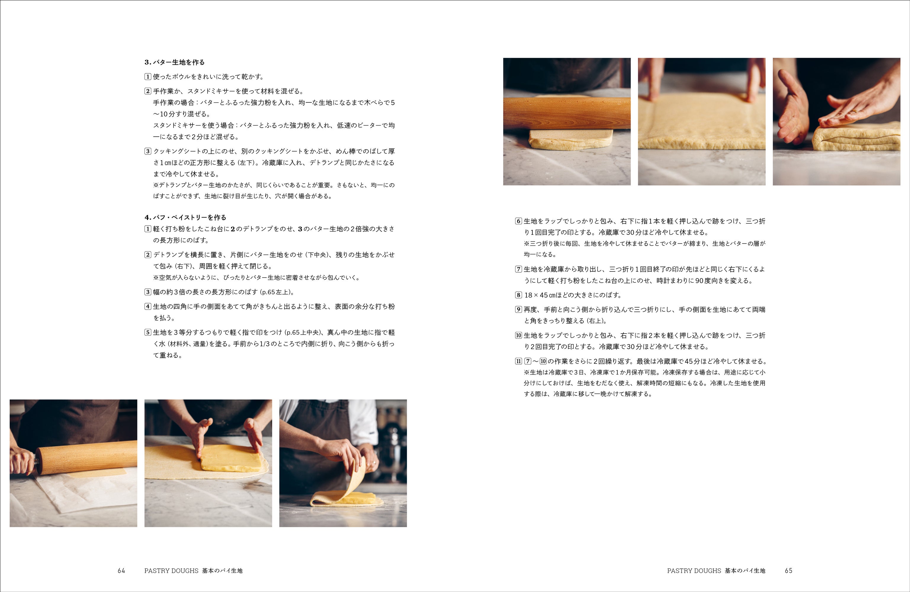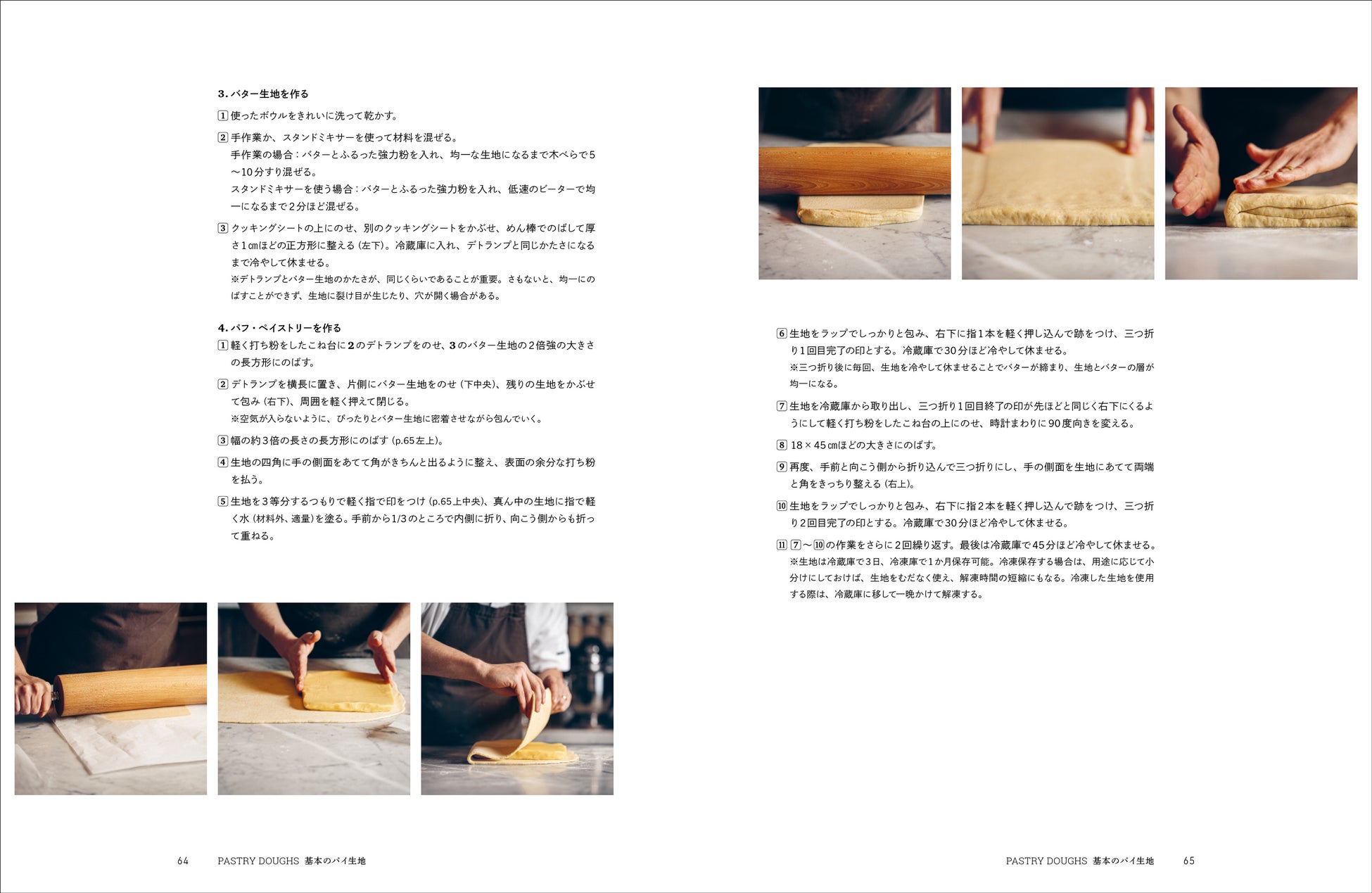 工程写真つきで基本のパイ生地8種の作り方、パイ生地の型への敷き込み方、飾り模様の作り方、パイ作りのコツやポイント、基本の道具などもご紹介しています。