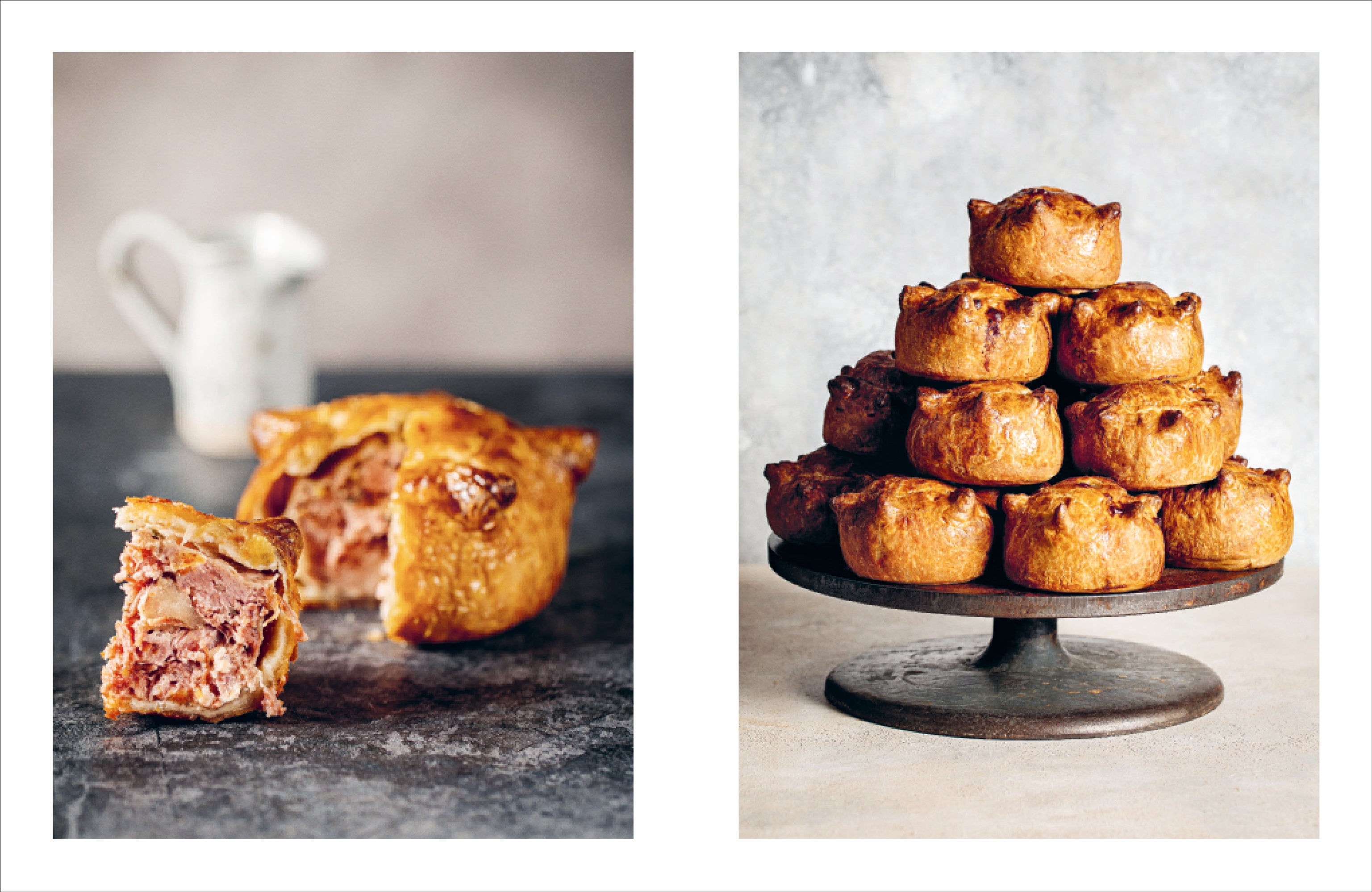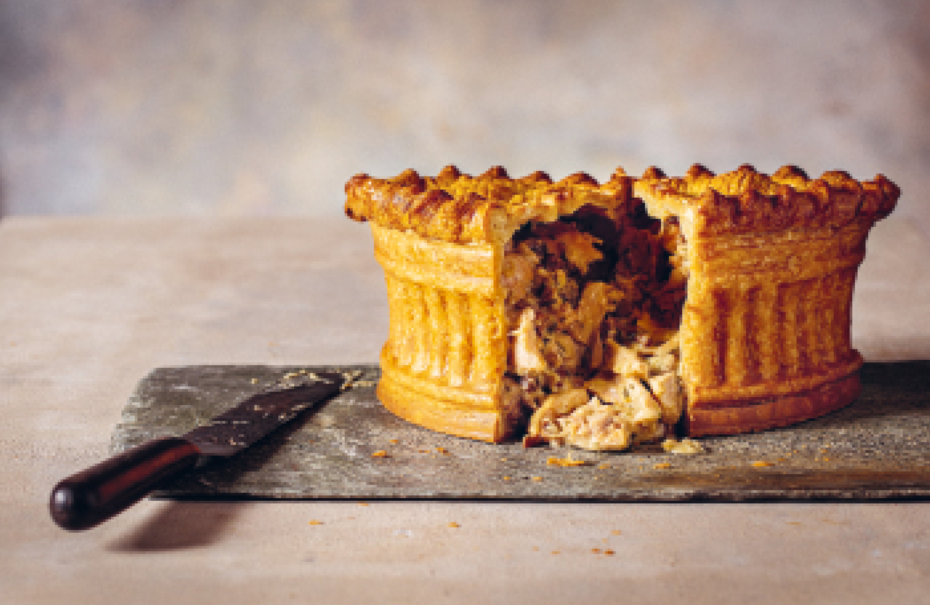 究極のソーセージロールやタラゴン風味のチキン&マッシュルームのパイといったイギリスの伝統的かつ典型的なパイやタルトから、豪華な傑作ビーフ・ウェリントンやスズキのパイ包み焼きまで。