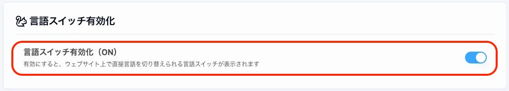 有効にすると、ウェブサイト上で直接言語を切り替えられる言語スイッチ(下図参照)が表示されます。