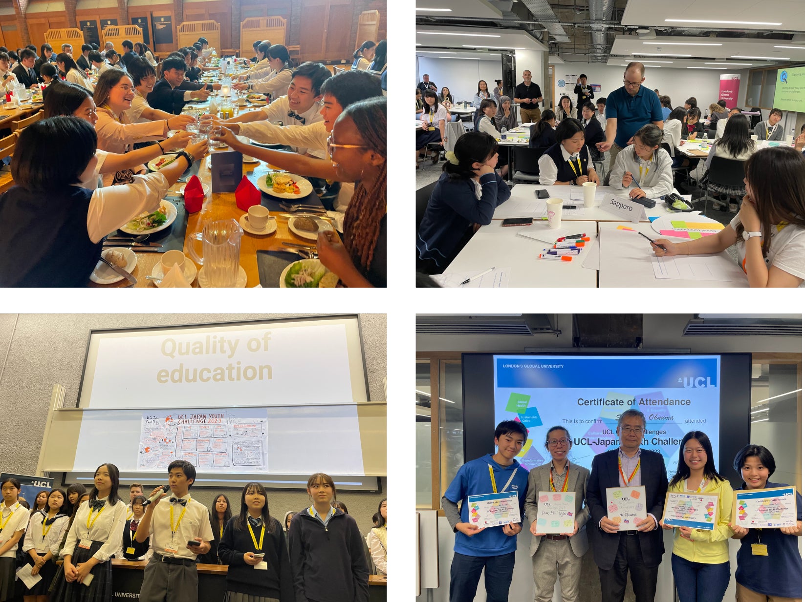 今回プログラムに参加した成田さん(高校1年生)は、「私は失敗を恐れて行動を起こせない自分を変えたくて、このプログラムを志願した。プログラム序盤では、大勢の人を前に挙手し、英国人の講師に完璧ではない英語で質問や発言をすることについて戸惑った。しかし、勇気を出して質問をしたり、自ら行動を起こして仲間を作っていく経験を経て、『少しの勇気が自分の人生を変える』ということを強く実感した。また、国際高等学校でケースメソッドやアクティブラーニングに基づいた授業を日常的に行っていたおかげで、初めての場でも主体的に学習に参加する力が身についていることが実感でき、自信になった。」と自らの大きな変化と成長を噛み締めました。
