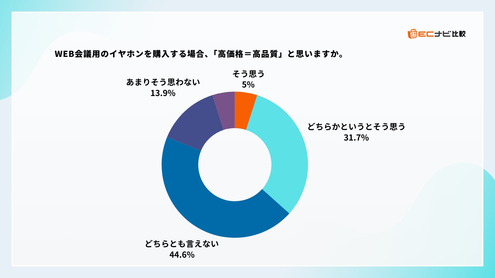 ・イヤホンの価格と品質の関係について「どちらとも言えない」(44.6%)が最多