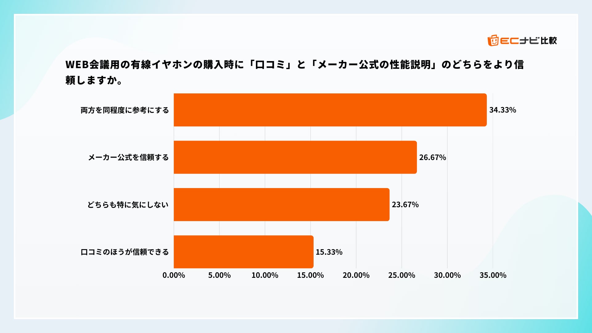 ・購入時の情報源は、「(口コミとメーカー公式情報の)両方を同程度に参考にする」(34.3%)が最多