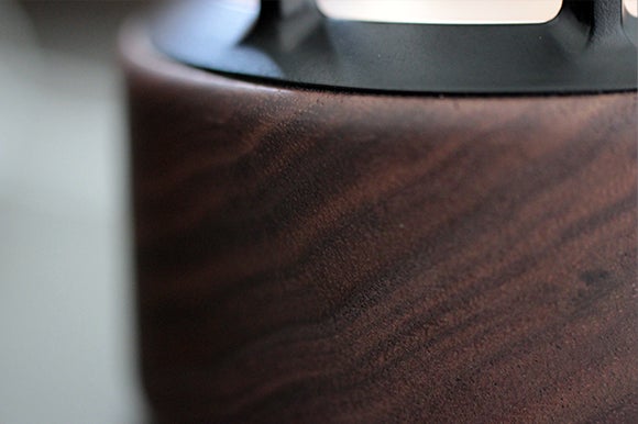 ボディには天然のウォールナット材を使用。レンズを保護するフレームは亜鉛ダイカストを使用しています。