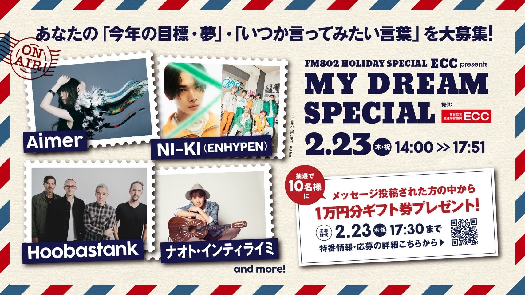 2月23日「FM802 HOLIDAY SPECIAL ECC presents MY DREAM SPECIAL」オンエア