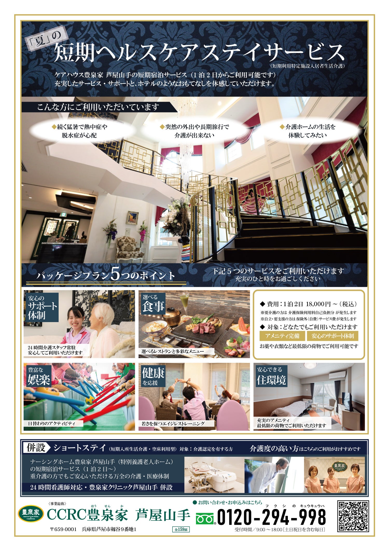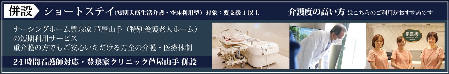 併設している、ナーシングホーム豊泉家 芦屋山手(特別養護老人ホーム)の短期宿泊サービス(1泊2日~)もお勧めです。